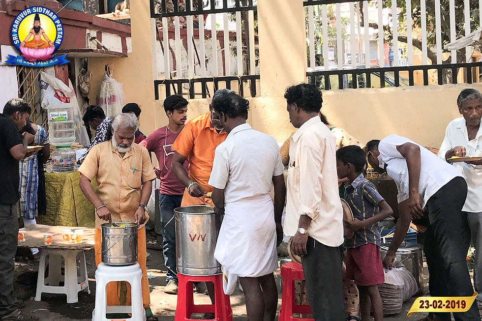 23/02/2019 அன்று மஹான்கள் இராமதேவர் & அறிவானந்தர் ஆகியோர்களின் அவதார தினங்களை முன்னிட்டு ஸ்ரீ கருவூர் சித்தர் பீடம் சார்பாக அம்பத்தூரில் அன்னதானம் வழங்கப்பட்டது.